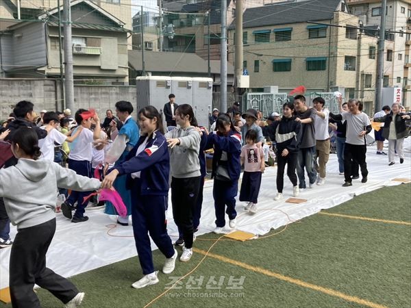 이어 효고조선가무단에 의한 경축공연이 진행되였다.《장기놀이춤》이 피로되자 큰 환성이 올랐으며 민요련곡에 춤판이 벌어져 분위기는 절정에 이르렀다.