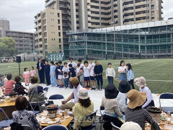 그후 학생들의 합창과 80돐기념공연에서 이름떨친 《꼬마가무단》에 의한 노래, 고베지부 노래소조의 중창이 피로되였다. 여러 상품이 준비된 추첨회가 진행되자 회장분위기는 한층 고조되였다.