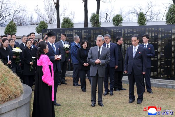 2026년 04월 11일 06:27 대외・국제조선중앙통신에 의하면 조선을 방문하고있는 중국공산당 중앙위원회 정치국 위원인 왕의외교부장과 일행이 10일 강동군에 있는 중국인민지원군렬사릉원을 찾아 꽃바구니를 진정하였다.