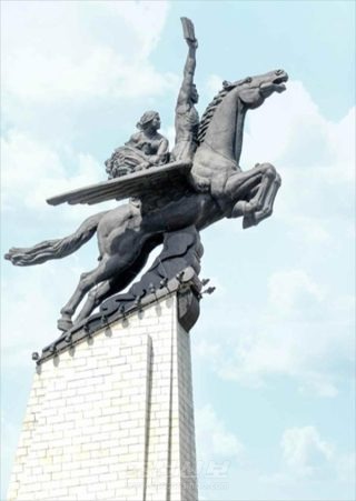 1959년 4월 당시 모란봉 경상골의 청년공원건설장을 현지지도하시던 주석님께서는 만수대언덕에 천리마시대를 상징하는 기념탑을 하나 세워야겠다고, 동상은 말같은것을 형상하는것이 좋겠다고 하시였다.