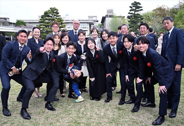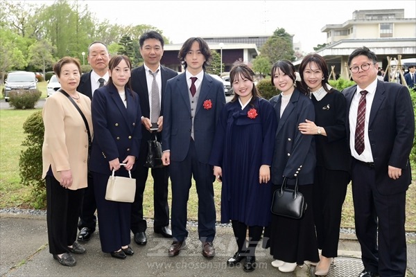 기념사진을 찍는 신입생과 가족들