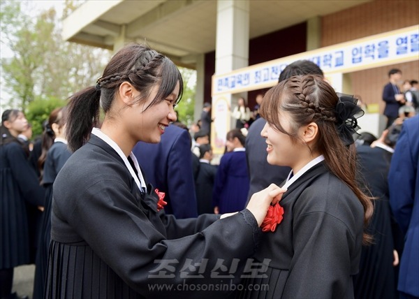 입학식을 앞두고 몸단장하는 신입생들