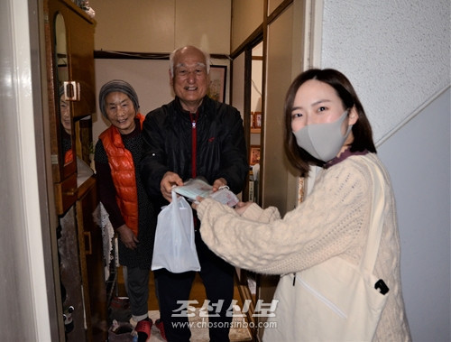 조청원들은 동포고령자들의 집집을 방문하여 감염방지품들을 전달하였다.