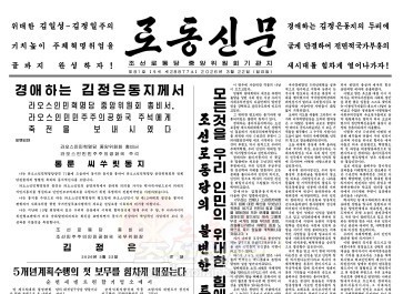 1면 -경애하는 김정은동지께서 보병,땅크병구분대들의 협동공격전술연습을 참관하신 소식과 사진문헌들(2면으로 계속) 2면 -경애하는 총비서동지의 숭고한 인민적풍모를 전하는 글들 3면 …