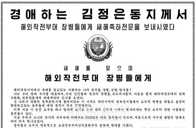 김정은원수님께서 해외작전부대 장병들에게 새해축하전문을 보내시였다