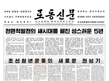 1면 -《전면적발전의 새시대를 펼친 성스러운 5년》이라는 표제아래 우리 당과 국가정책의 제1순위는 언제나 후대들을 위한 시책이며 이것은 조선로동당의 절대불변의 원칙,공화국의 영원한…