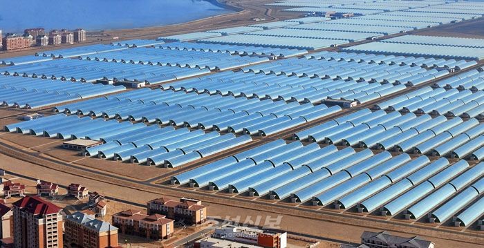 강바람에 모래먼지만 흩날리던 섬지역에 지난 2월 1일 신의주온실종합농장이 준공하였다. 천수백동의 각이한 류형의 현대적인 온실호동들과 남새과학연구중심, 문화주택들, 다양한 문화생활기…