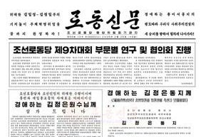 김정은동지께서 강령적인 결론을 하시였다 조선중앙통신은 조선로동당 제9차대회 5일회의가 진행된 소식을 다음과 같이 전하였다. 위대한 김정은동지를 존엄높은 조선로동당의 최고수위에 또다…