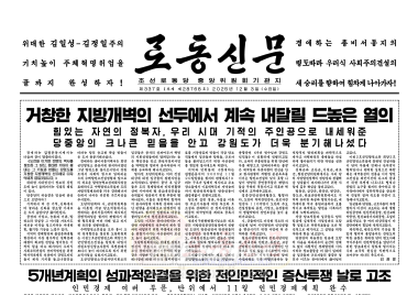 1면 -경애하는 김정은동지께서 준공을 앞둔 지방공업공장들의 실태를 현지료해하신 소식과 사진문헌들(2면으로 계속) 2면 -석탄공업부문에서 매일 높은 생산실적 기록 3면 -경애하는 김…