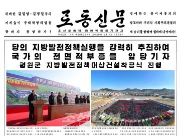 1면 -평원군 지방발전정책대상건설착공식 진행 2면 -글 《인민은 2월의 봄을 무궁토록 노래하리라》 -만수대언덕에 높이 모신 위대한 수령 김일성동지와 위대한 령도자 김정일동지의 동상…
