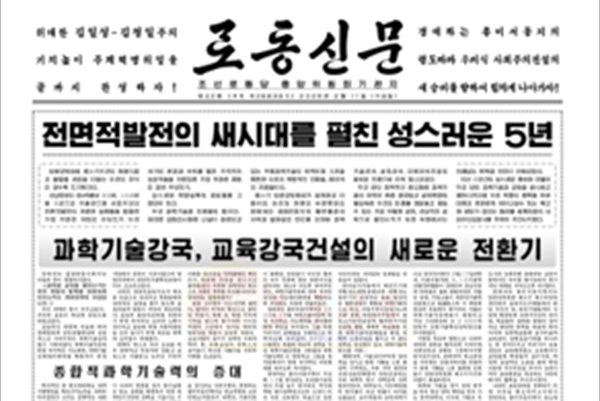 1면 -《전면적발전의 새시대를 펼친 성스러운 5년》이라는 표제아래 제8기 당중앙위원회가 설계하고 이끌어온 승리와 투쟁행정은