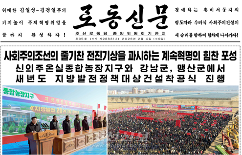 1면 -신의주온실종합농장지구와 강남군,맹산군에서 새년도 지방발전정책대상건설착공식 진행(2면으로 계속) 2면 -위대한 령도자 김정일동지의 현지지도 20돐 기념보고회 강계시의 여러 단…