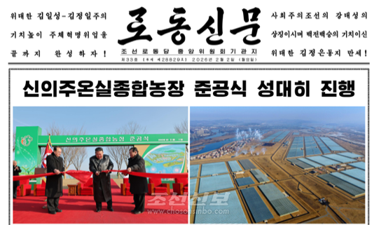 1면-3면 -신의주온실종합농장 준공식이 성대히 진행된 소식(5,6면으로 계속)과 사진문헌들 4면 -경애하는 김정은동지께서 신의주온실종합농장건설에 참가한 군인건설자들,청년전위들과 찍…