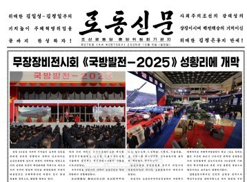 1면 -무장장비전시회 《국방발전-2025》가 성황리에 개막된 소식(3면으로 계속)과 사진문헌들 2면 -무장장비전시회 《국방발전-2025》 개막식에서 한 경애하는 김정은동지의 연설과…