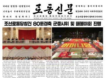 조선중앙통신은 조선로동당창건 80돐경축 군중시위 및 홰불야회가 진행된 소식을 다음과 같이 전하였다. 조선로동당창건 80돐경축 군중시위 및 홰불야회가 11일 김일성광장에서 진행되였다…