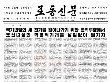 8일부 《로동신문》의 사설 《국가번영의 새 전기를 열어나가기 위한 변혁투쟁에서 조선녀성의 혁명적기개를 남김없이 떨치자》의 전문은 다음과 같다. 당 제9차대회 결정을 높이 받들고 새…