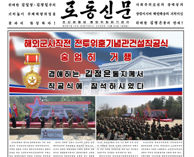 조선중앙통신은 김정은원수님의 참석밑에 해외군사작전 전투위훈기념관건설착공식이 진행된 소식을 다음과 같이 전하였다. 조선로동당의 령도에 절대충성하는 우리 군대특유의 사상정신적우월성과…