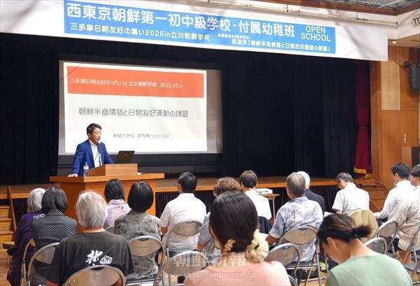 「三多摩日朝友好のつどい2025」が4日、西東京第1初中で行われた。 授業参観と同時開催された今回の集会では、講演会と懇親会があった。 講演会には三多摩平和運動センター役員と東京都議会の鈴木烈議員(立…