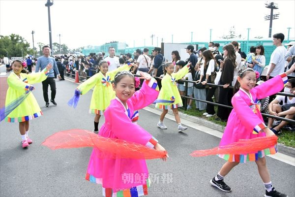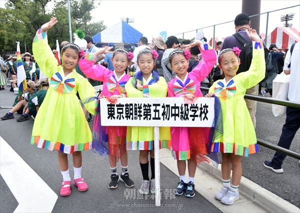 東京第5初中の児童たちによるパレード出演も過去に度々行っており、直近では今年を含めて3年連続での出演となった。児童たちはカラフルな民族衣装を身にまとい、朝鮮の歌に合わせて踊りを披露した。沿道の来場者たちからは、温かなまなざしが向けられた。