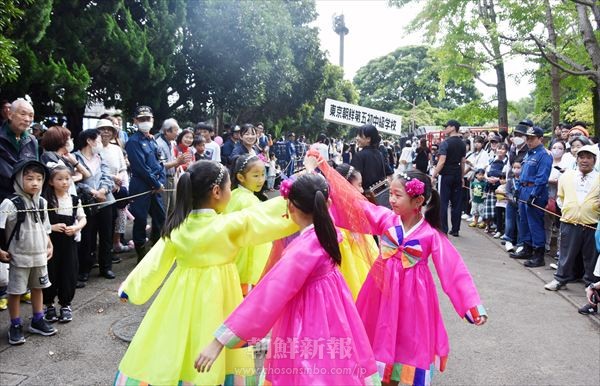 東京都江戸川区が主催する江戸川区民祭り(12日、都立篠崎公園)のメインイベントである場内パレードに、東京第5初中の児童5人(初4)が出演した。例年、約55万人が来場する地域最大の祭りで、朝鮮舞踊を華やかに披露した。
