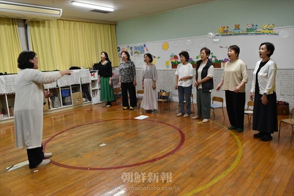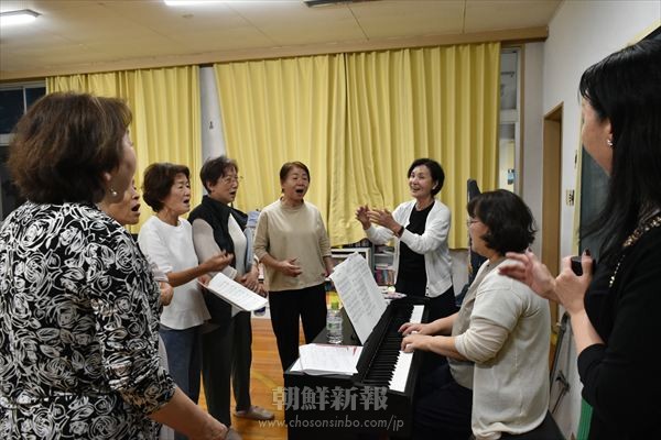 ちょっとしたことでも何か違うと思ったらピアノを止め、実際に歌ってみせながら呼吸や音程、発音など細かく指導するのは同校卒業生で文芸同東海支部の尹玉任さん。教えて8年目になる。「本当に玉任ソンセンニムのおかげ。自然な発声法を学んでいい声が出るようになった」とメンバーは口をそろえる。