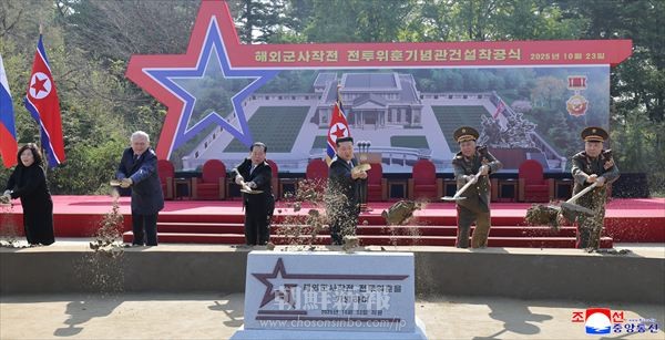 朝鮮中央通信によると、海外軍事作戦戦闘偉勲記念館建設の着工式が、10月23日に行われ、金正恩総書記が演説した。