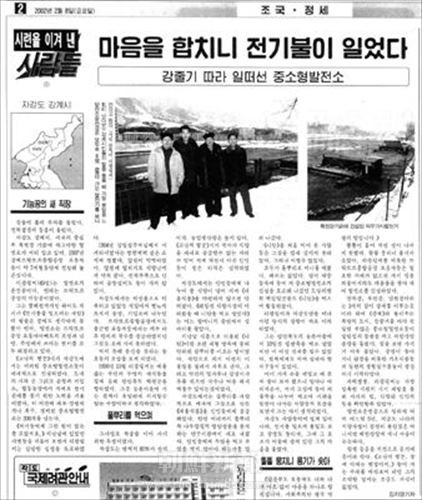 こうして始まった朝鮮各地で記者たちが行った取材の内容は「試練を打ち勝った人びと」(02年2月8日~6月21日、14回、朝鮮語版)という表題で連載された。
