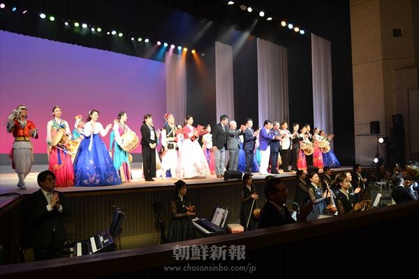 古典美とダイナミズムに富む朝鮮独特の五面太鼓の舞いをブラッシュアップした歌劇団のオリジナル作品「オブクチュム-絆風響鼓舞-」で幕を開けた公演では、独舞「チャンゴの舞」、男声独唱「トラジの花」、チャンセナプ独奏「輝く星」、混声重唱「海の歌」をはじめとする12演目が披露された。民族情緒あふれる舞台に、観客たちは惜しみない拍手を送った。