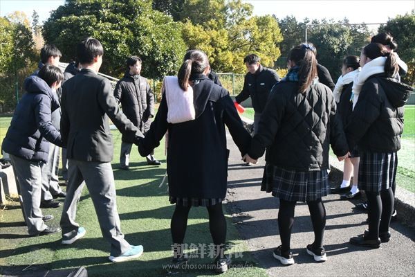 学生中央体育大会・高級部サッカー部門の最終日(20日)。応援に駆け付けた神奈川中高の高級部3年生も選手同様、試合前に円陣を組み、チームと共に戦いぬくぞと気合を入れた。かれかのじょらの声援は、ピッチに立つ選手たちの背中を押し、最後までボールを追う原動力になった。