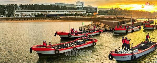 新浦市浅海養殖事業所(咸鏡南道、写真、労働新聞)で初めてホタテガイの収穫シーズンを迎えた。