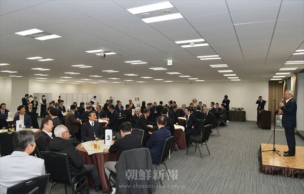 朝鮮大学校の李清敏理事長の祝杯の音頭で始まった懇親会は、参加者たちが卓を囲み、各地での経験を互いに学び、学校を守っていく決意を新たにする場となった。