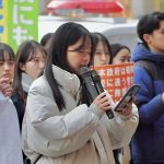 魏聖泰さん(東京中高高2)は、日本のサッカークラブに所属していた時に、心無い言葉を投げつけられた経験を語り、「在日朝鮮人に対する差別的な言動は後を絶たず、自分たちの生活のすぐそばにある。差別がなくならないのは、大人たちが差別を作り、見過ごし、助長してきたからだ」と、述べた。