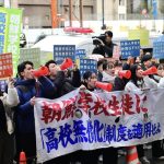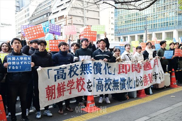 600回目の「金曜行動」に集まった参加者らは、拡充が進められる高校無償化制度に朝鮮高校も適用するよう、強く訴えた。
