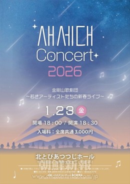 内容:金剛山歌劇団の朝青世代団員たちによる新春ライブ。混声重唱「晴れた空に向かって」、ヘグム重奏「ひばり」、舞踊「山河を舞う」他