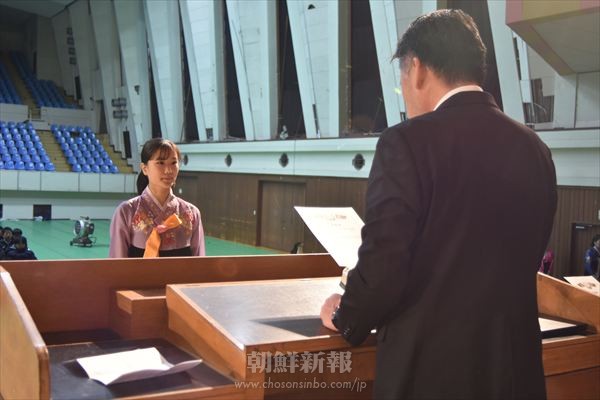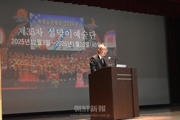 開会式に続き、第35回在日朝鮮学生少年芸術団の帰還報告が、李哲秀団長(東春初級校長、西日本)と慎泰廣副団長(総聯中央教育局部長、東日本)によって行われた。