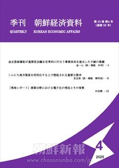 『季刊 朝鮮経済資料』(発行=KAN経済研究所)2025年第4号が発行された。今号では、朝鮮の地方貿易、商業分野における電子化などのトピックスが扱われている。