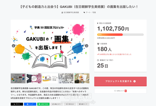52年の歴史を持つ在日朝鮮学生美術展「学美(GAKUBI)」の実行委員会が5050回学生美術展」を記念した公式画集「学美に出会う」の出版に向け、クラウドファンディングを実施している。締切は2月22日23時59分。朝鮮学校の文化と子どもたちの感性を未来へつなぐ取り組みとして、広く協力が呼びかけられている。