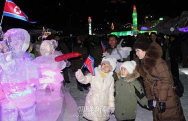 金正日総書記生誕84周年を祝して、両江道三池淵市で氷彫刻祭典2026(写真、民主朝鮮)が盛況の中、行われている。