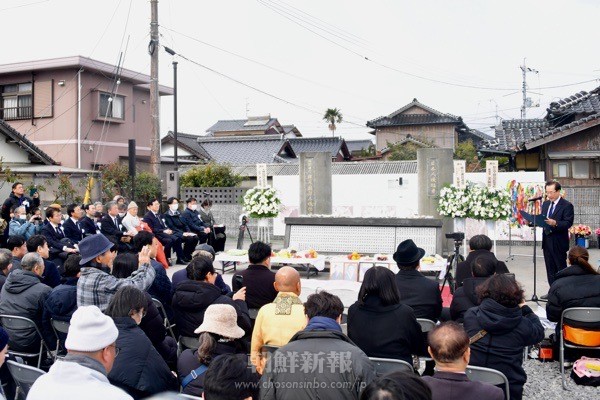 太平洋戦争中の1942年2月3日、山口県宇部市の海底炭鉱「長生炭鉱」で発生した水没事故から84年を迎え、犠牲者を追悼する集会が7日に行われた。犠牲者追悼碑のある床波の「追悼ひろば」で行われた集会(主催=「長生炭鉱の水非常を歴史に刻む会」(以下、刻む会))には、刻む会の井上洋子共同代表、韓国遺族会の楊玄会長など関係者と遺族、日本の国会議員や山口県、宇部市の各担当職員など来賓たち約800人が参加した。