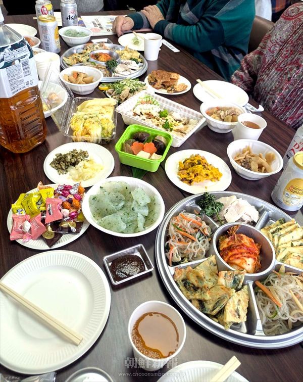 テーブルに並んだ朝鮮料理と日本料理の数々