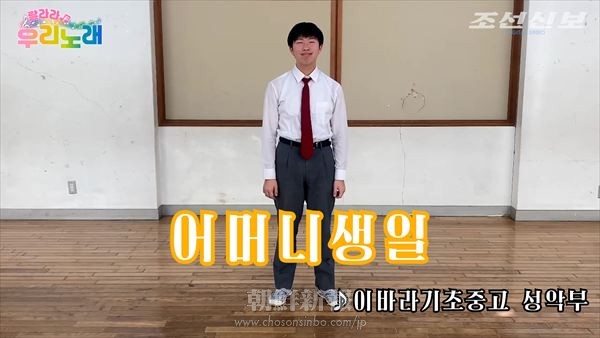 第10回は、茨城初中高のパク・サンギさん(声楽部)が「母の誕生日(어머니생일)」を独唱で「子どもたちよ、これが私たちの学校だ(아이들아 이것이 우리 학교다)」を茨城初中高、北海道初中高の声楽部の生徒たちが歌いました。