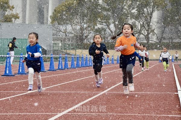 雪の中、ゴール目指し力走/大阪同胞学生駅伝・マラソン大会