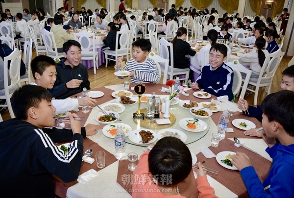 祖国滞在中、子どもたちが何より楽しみにしていたのが食事の時間だ。真冬の平壌で猛練習に励む子どもたちの日々を支えたのは、滞在先の平壌ホテルで用意してくれた、真心のこもった料理の数々だった。 食卓には、牛…
